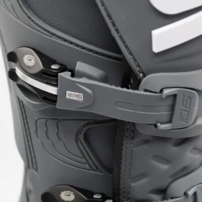 -El sistema Flex System facilita la flexión de la bota y los cuatro cierres flotantes permiten un ajuste personalizado a cada piloto sin importar la complexión física o el uso o no de rodilleras
